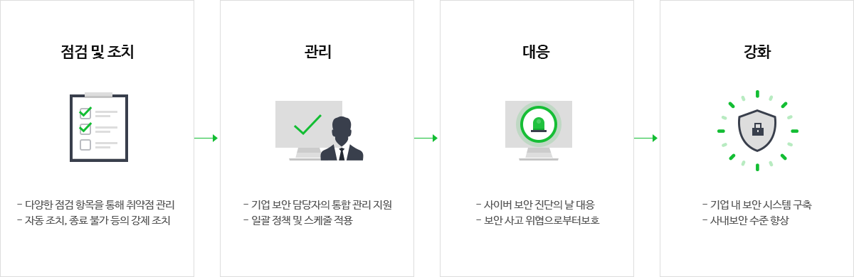 - 취약 항목 자동 조치로 안전한 기업보안 상태 유지
