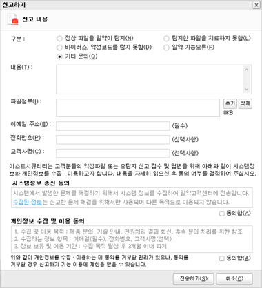 - 알약 프로그램 내부의 [신고하기] 기능 이용