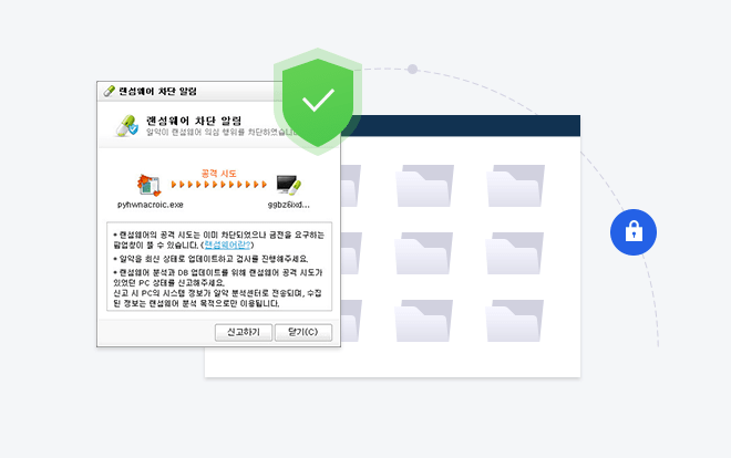 랜섬웨어의 공격 행위를 알약이 미리 탐지하고 차단하여 사용자 PC의 소중한 문서와 파일이 암호화되는 것을 막습니다.