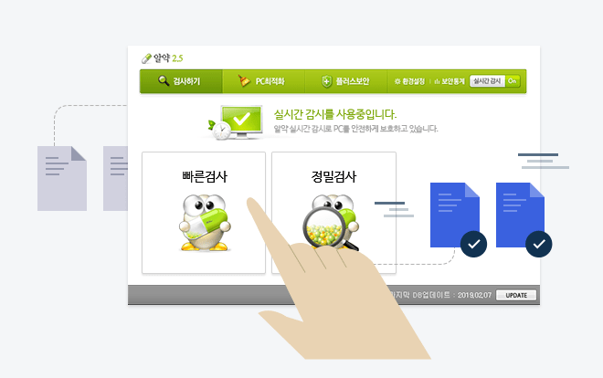 즉시 피해를 줄 수 있거나 자주 감염되는 악성코드를 신속하게 검사