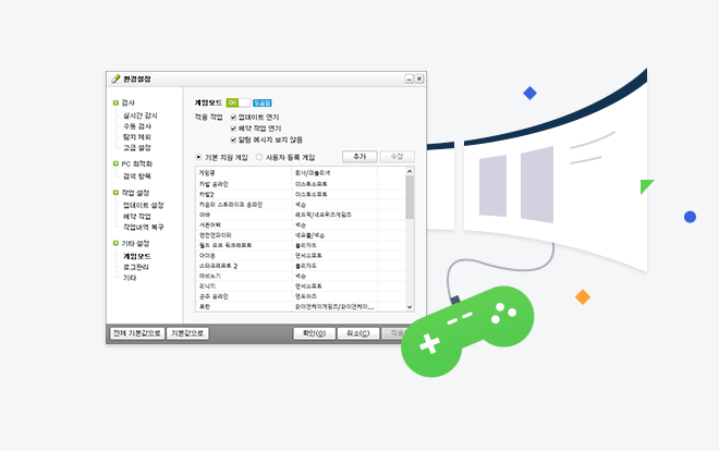 게임 실행 시 알약 업데이트, 알림 등 설정을 게임 환경에 자동으로 최적화