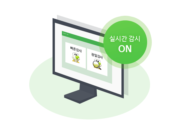 실시간 감시를 켜두기만 하면 각종 악성코드 위협을 알약이 알아서 모니터링하고, 검사가 필요할 땐 한 번의 클릭만으로 쉽게 사용할 수 있습니다.